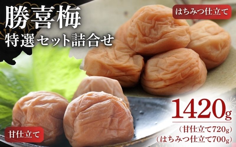 チョイスPayポイントと交換できる品 贈答木箱入り梅干しの人気2味詰合せ品です 勝喜梅 特選セット詰合せ 甘仕立て【塩分10%】 はちみつ仕立て【塩分8%】【shokibai013】