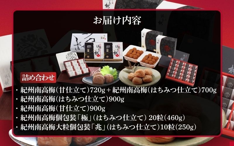 チョイスPayポイントと交換できる品 勝喜梅・人気の贈答品5品の詰合せ 勝喜梅 勝喜梅詰め合わせ 甘仕立て【塩分10%】 はちみつ仕立て【塩分8%】【shokibai014】