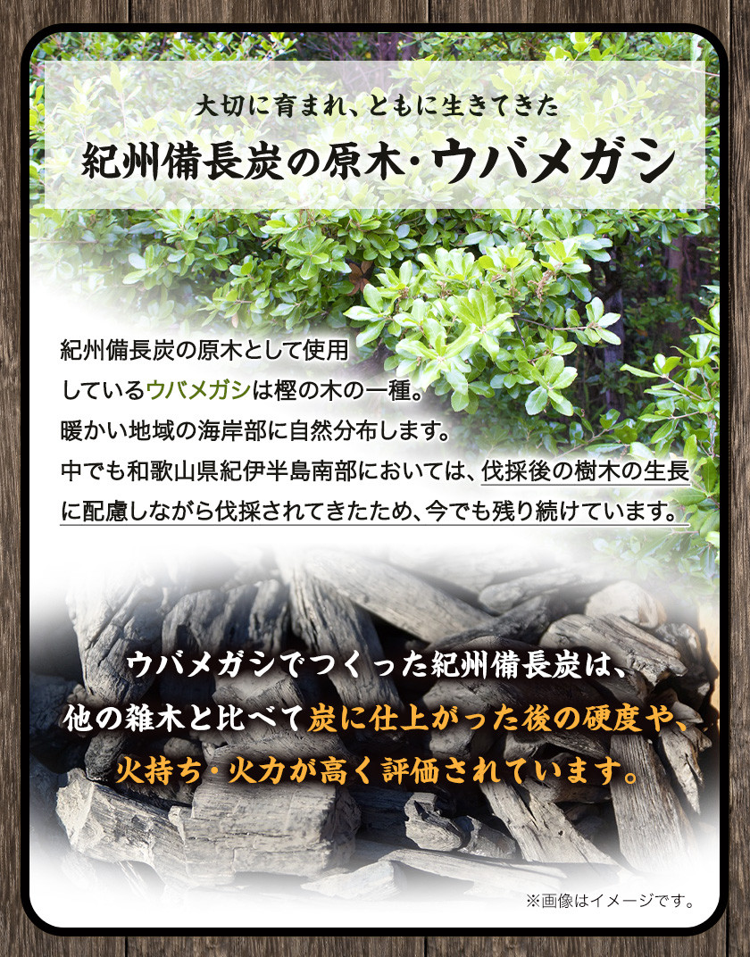 地場産品基準 告示第5条第3号に適合 適合理由:町内の炭窯で原木の加工から窯出しまですべての工程(10割)を町内で行っており、付加価値があるため。