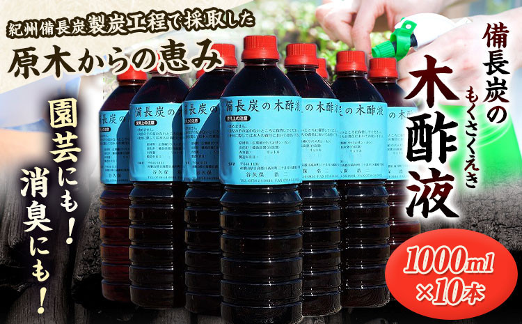 紀州備長炭製炭工程で採取した、原木からの恵み。 備長炭の木酢液 1000ml×10本 株式会社紀 《30日以内に出荷予定(土日祝除く)》 和歌山県 日高川町 消毒 園芸 木酢液 備長炭 炭