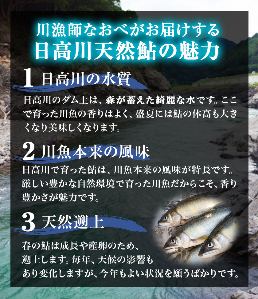 商品情報:日高川椿山ダム上流 天然子持ち鮎 20cm以上 4尾×2パック 計8尾