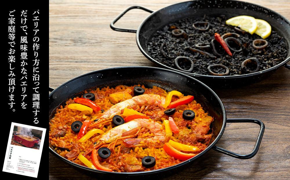 魚介と鶏肉のパエリアの素・イカスミのパエリアの素が各1食ずつとパエリア米2回分入ったセットです。