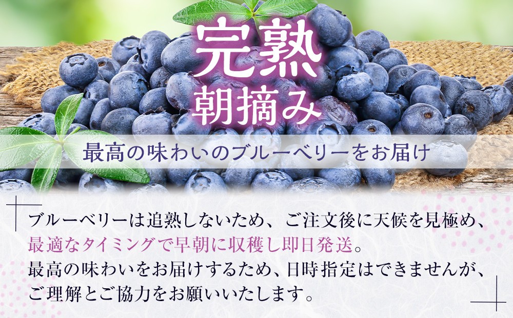 その為ご注文を頂いてから天候を確認しつつ最適なタイミングで早朝(!)に完熟のブルーベリーを収穫し、その後即発送とさせて頂きます。