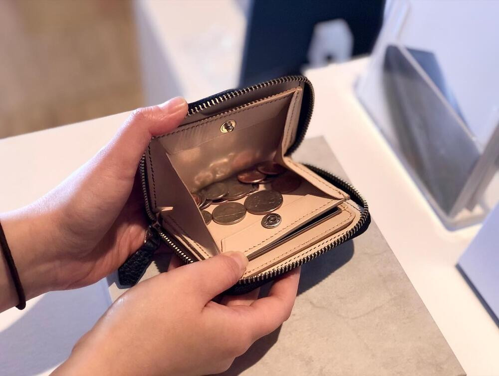 手のひらサイズのコンパクトなお財布でありながら、”小銭入れ””カードポケット”はもちろん”お札は畳まず”にスマートに出し入れ可能です。