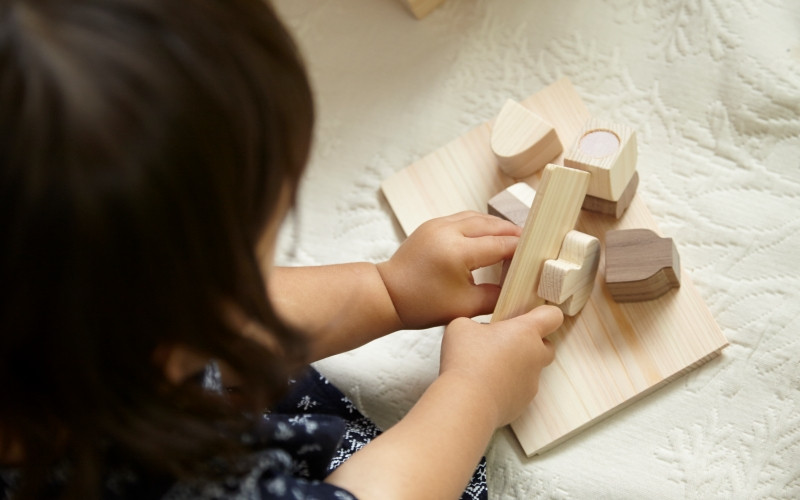 定番の知育おもちゃも、ひのきとウォルナットの色合いで特別に。
