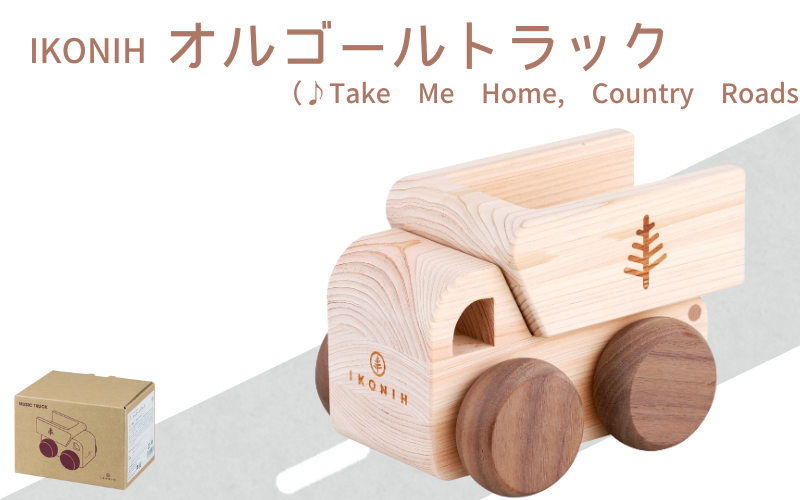 前後に動かすと、子どもの頃に聴いたあの名曲が流れます。 IKONIH オルゴールトトラック/ おもちゃ 子供 こども オモチャ 玩具 プレゼント お祝い 木 出産祝い 安全 オーガニックトイ ファーストトイ 車 トラック 大型車 乗り物 アイコニー 【kip006】