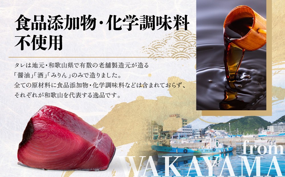 漬けたたれは、地元和歌山県で有数の老舗製造元が造る「醤油」「酒」「みりん」のみで造りました。
