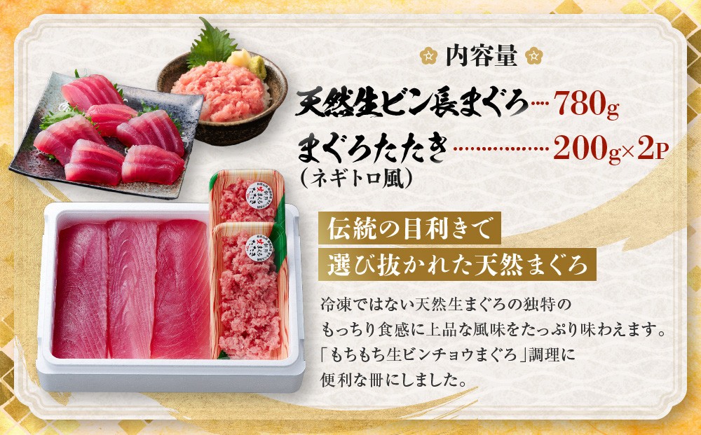 | 容量 | 内容量:概ね5人前 ●天然生ビン長まぐろ 780g ●まぐろたたき(ネギトロ風) 200g×2P |