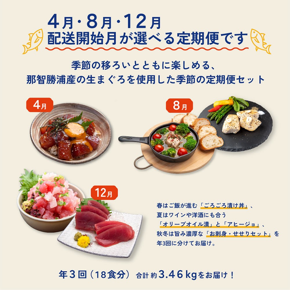 季節の移ろいとともに楽しめる、那智勝浦産の生まぐろを使用した季節の定期便セットです。