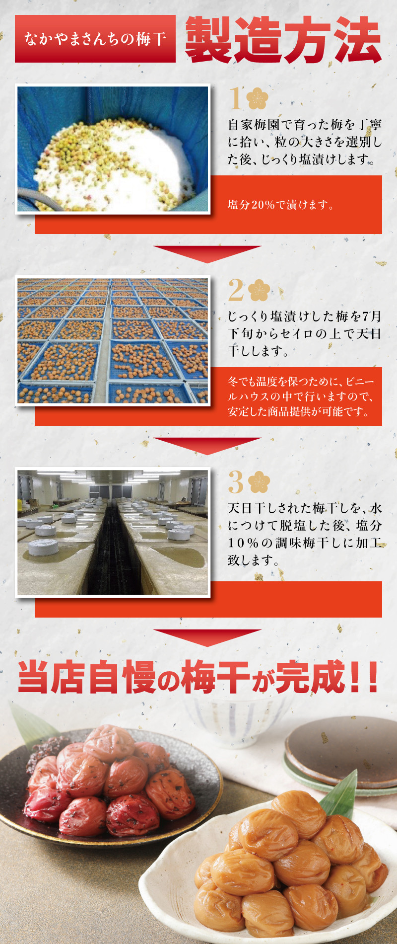 この自治体のポイントについてチョイス公式ポイント交換対象 紀州本場の南高梅を、うす塩味とかつお風味をセットにしてお届けします。 紀州南高梅 うす塩味とかつお風味セット 塩分5%(1kg×2) なかやまさんちの梅干 うめ ウメ【nky001】