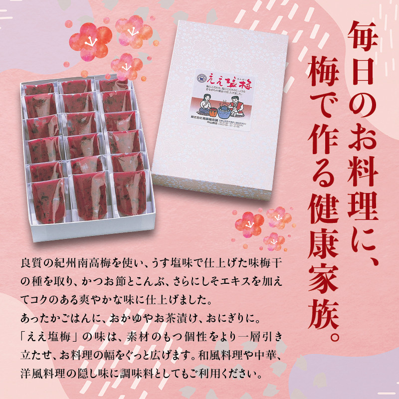 この自治体のポイントについてチョイス公式ポイント交換対象 毎日のお料理に、南高梅で作る、健康家族。 紀州南高梅 ええ塩梅 梅肉仕立てパック入 × 18袋(25g/1袋)なかやまさんちの梅干 うめ ウメ【nky016】