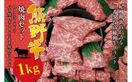 希少和牛 熊野牛 焼肉1kgセット (ロース300g バラ焼肉400g モ…