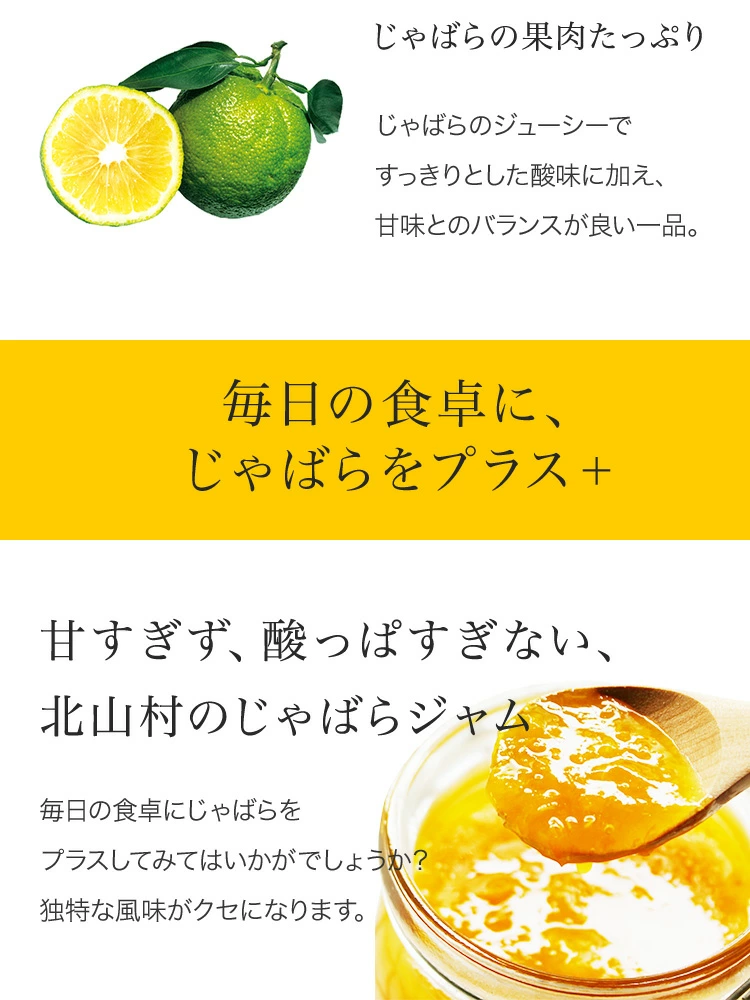 自然の味にこだわり、「じゃばら」の果肉をたっぷりと使用した、お子様でも食べやすいジャムです。