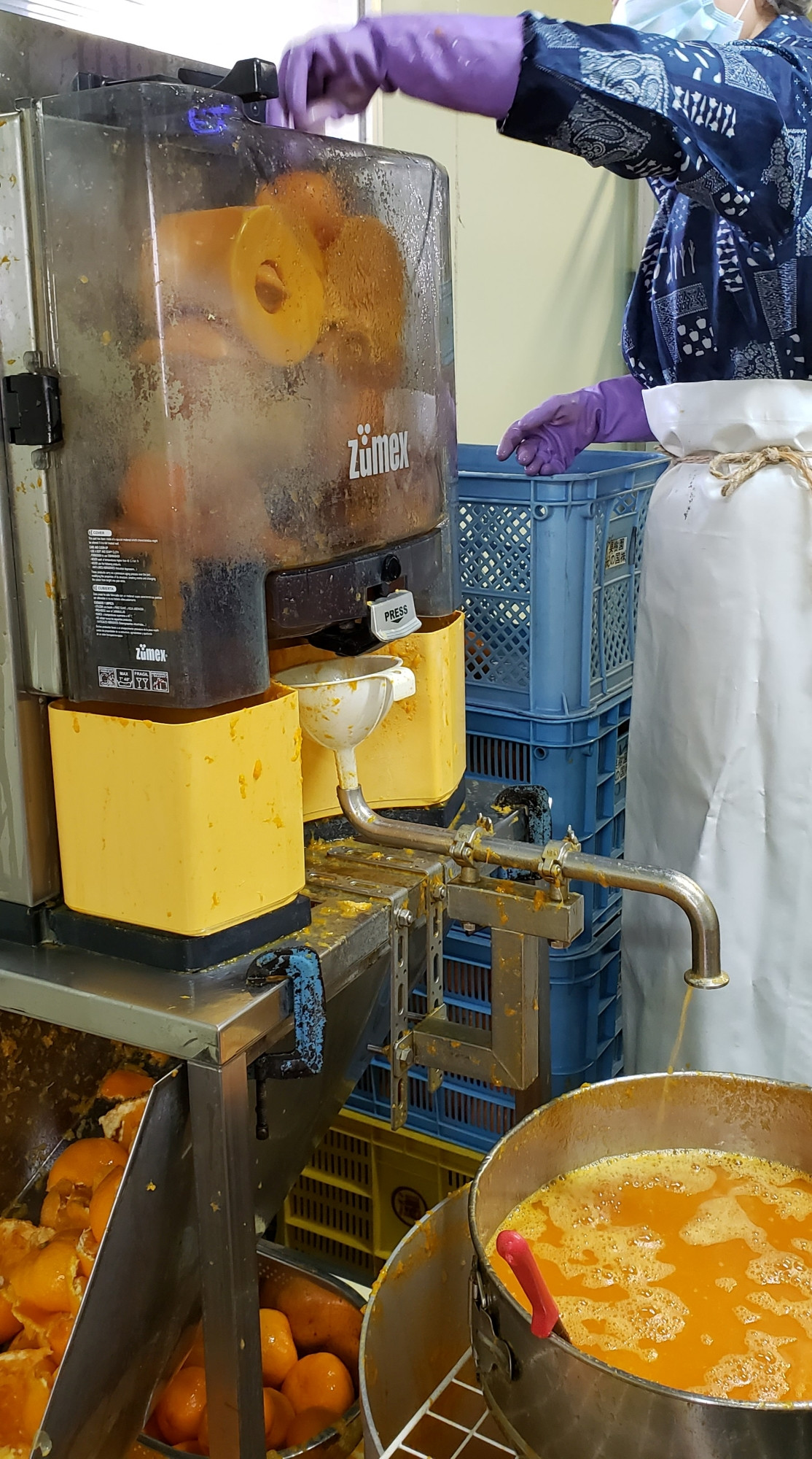 断面から果皮の油分が入らないよう優しくそっと圧搾。