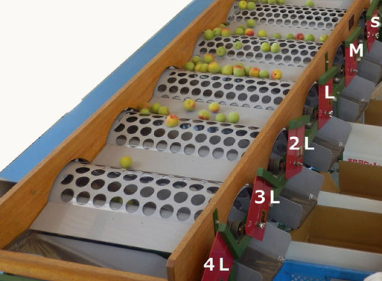 梅の実は真丸ではないので選果機の該当穴に落ちずに飛び越えて隣の穴に落ちる(小サイズが大サイズの穴に落ちる)ことが稀にあります。S~4Lの選果出口から出たものをその大きさとして表示発送していますので、多少大きさにばらつきがございます。