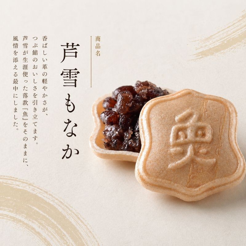 芦雪が生涯使った落款『魚』をそのままに、風情を添える最中