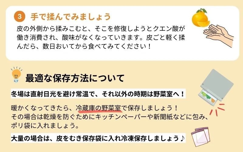 ゴツゴツとした外観ですが、外皮は手で剥くことができ、内皮も薄く、温州みかん同様に手軽に食べることができます。