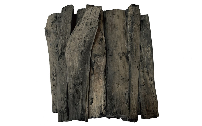 原木を半分に割った炭で半円状となっています。長辺が3~6cm、長さは20cm~です。ただし箱の内寸が26cmなので、最長でも25cm位となります。