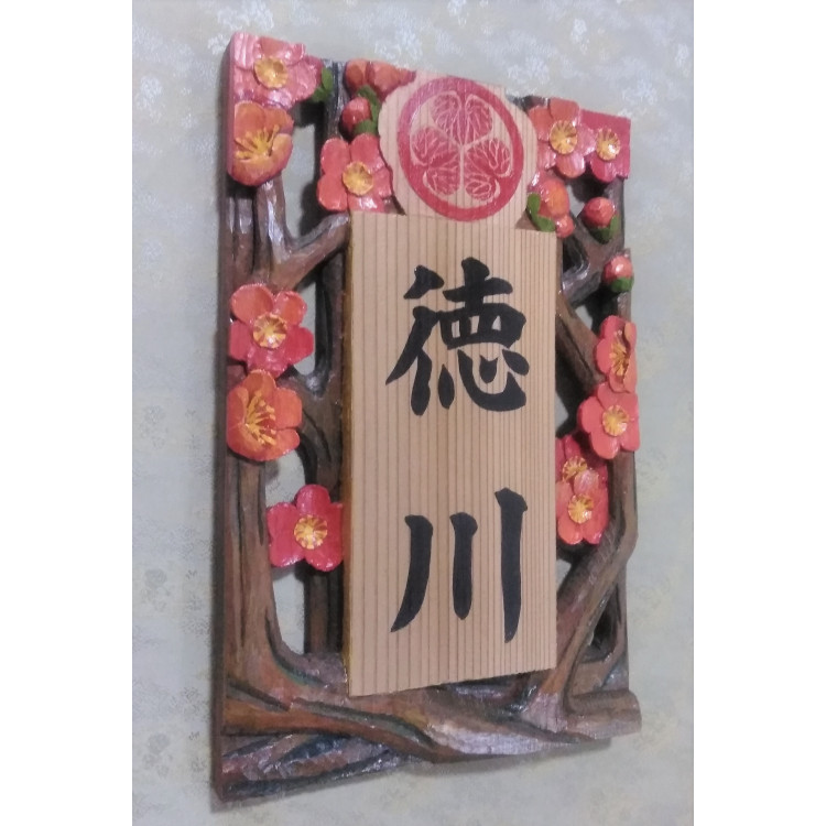 【受注制作】家紋入り飾り表札(梅花 浮き彫り)【hms019A-cho…