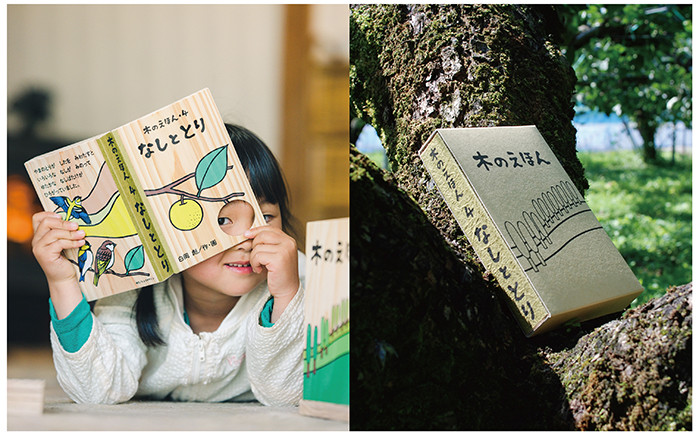 本体に智頭杉と因州和紙を使った木のえほんシリーズの第4巻。本作は、鳥取を代表する果物「二十世紀梨」と山の鳥とのユーモラスな掛け合いの物語です。「木のえほんとは?」本体に鳥取の県産材である智頭杉を使い、背表紙に鳥取を代表する伝統工芸品である因州和紙を使った「木で出来た絵本」です。それぞれ鳥取ゆかりの農産品や神話のキャラクターたちが鳥取の豊かな自然を駆け巡り、観る人の想像を膨らませる内容です。本そのものに智頭杉を使用しており、その柔らかな触り心地と香りが特徴です。そして、ページのところどころに切り抜かれた絵が飛び出し、ページをめくるたびにストーリーが繋がっていきます。また、背幅を因州和紙でかなめているので、丈夫でありながらどこか懐かしくもある優しいデザインです。杉は軽い素材でもありますので、小さな子供が持っても負担になることはありません。一枚一枚丁寧に手作業で切り抜かれたページは隣り合うページにピタリと合わさり、まるでブロックのような感覚も味わえます。手でなぞらえたり、のぞいたり…。絵本でもあり、玩具でもある木のえほん。子供が五感で感じることのできる絵本です。