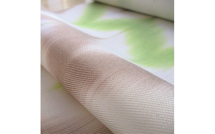 光沢のある綾織地に矢羽を上下にずらしたような経絣が表現された帯は、独特の存在感があります。