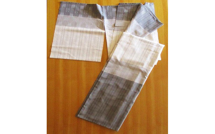 鳥取青谷在住の染織作家・山下健(1955~ )の手織の紬訪問着です。天然染料の矢車によるグレーのグラデーションが美しい熨斗目の訪問着は、品格のある袋帯を合わせられるとスタイリッシュな装いに。所々に花織が施された奥行きのある訪問着です。
