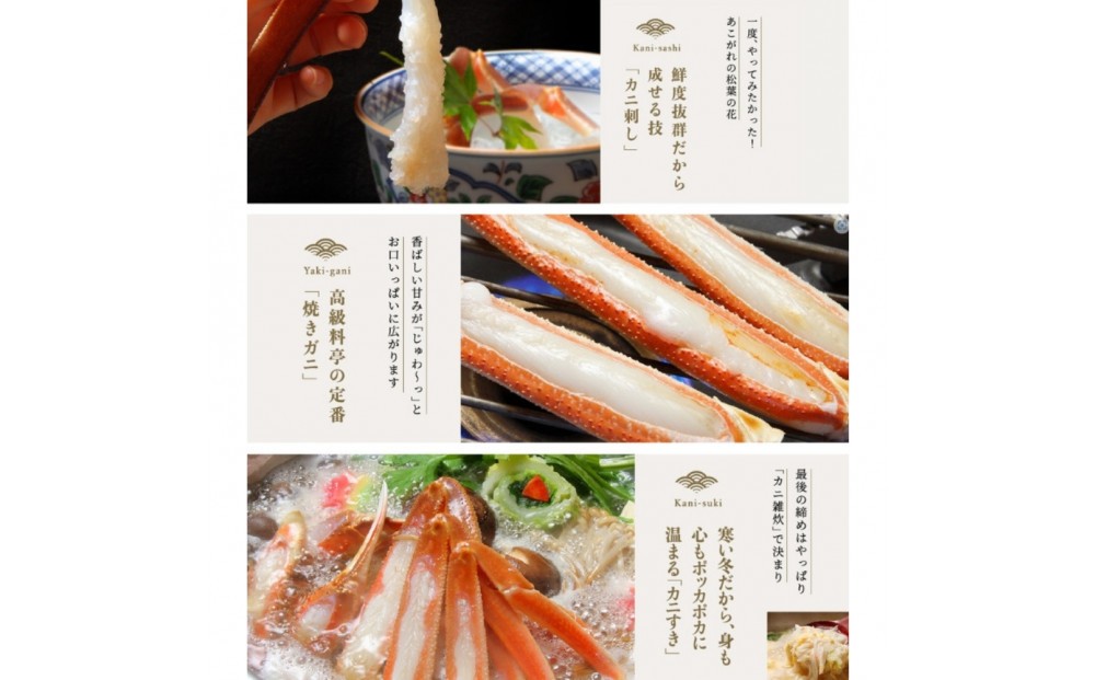 お刺身、茹で、焼き、カニすきなど存分にお楽しみいただけます。