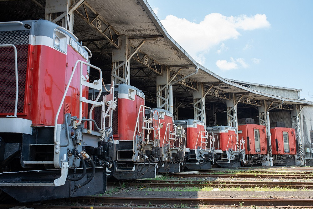 扇形車庫は、車両の前後方向を変えるための転車台を中心に備えた、扇形の車両格納庫です。この扇形車庫は1955年(昭和30年)から68年にわたり現存するJR西日本中国地方で唯一の扇形車庫であり、今日も頻繁にディーゼル機関車や気動車を検査・修繕する施設です。この扇形車庫を少人数の貸し切りでご案内します。転車台を活用した入換作業などを直接体験していただきます。見学の最後には、素敵なお土産もご用意しています。