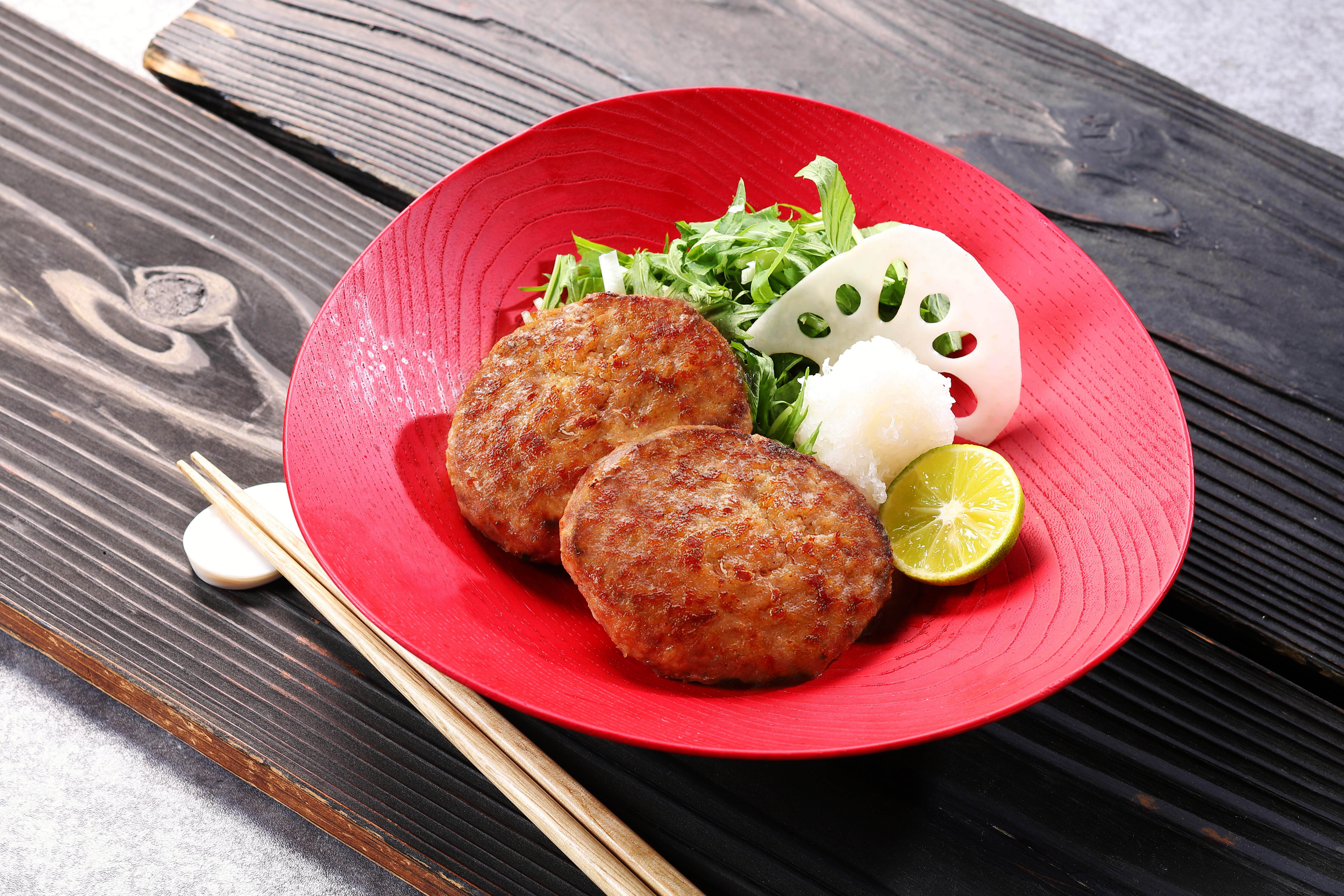 ジューシーな肉汁と深い味わいが特徴のブランド牛の始祖『鳥取和牛』と豊かな自然の中、衛生的に管理され独自の飼料で育てられた『大山豚』のこだわりの手捏ねハンバーグです。成形も手仕事で丁寧に空気を抜きながら行っております。肉の食感を活かすため粗挽きミンチを使用し、しっかりと捏ねることで鳥取和牛と大山豚の旨味が凝縮された食べ応えのあるハンバーグに仕上げました。