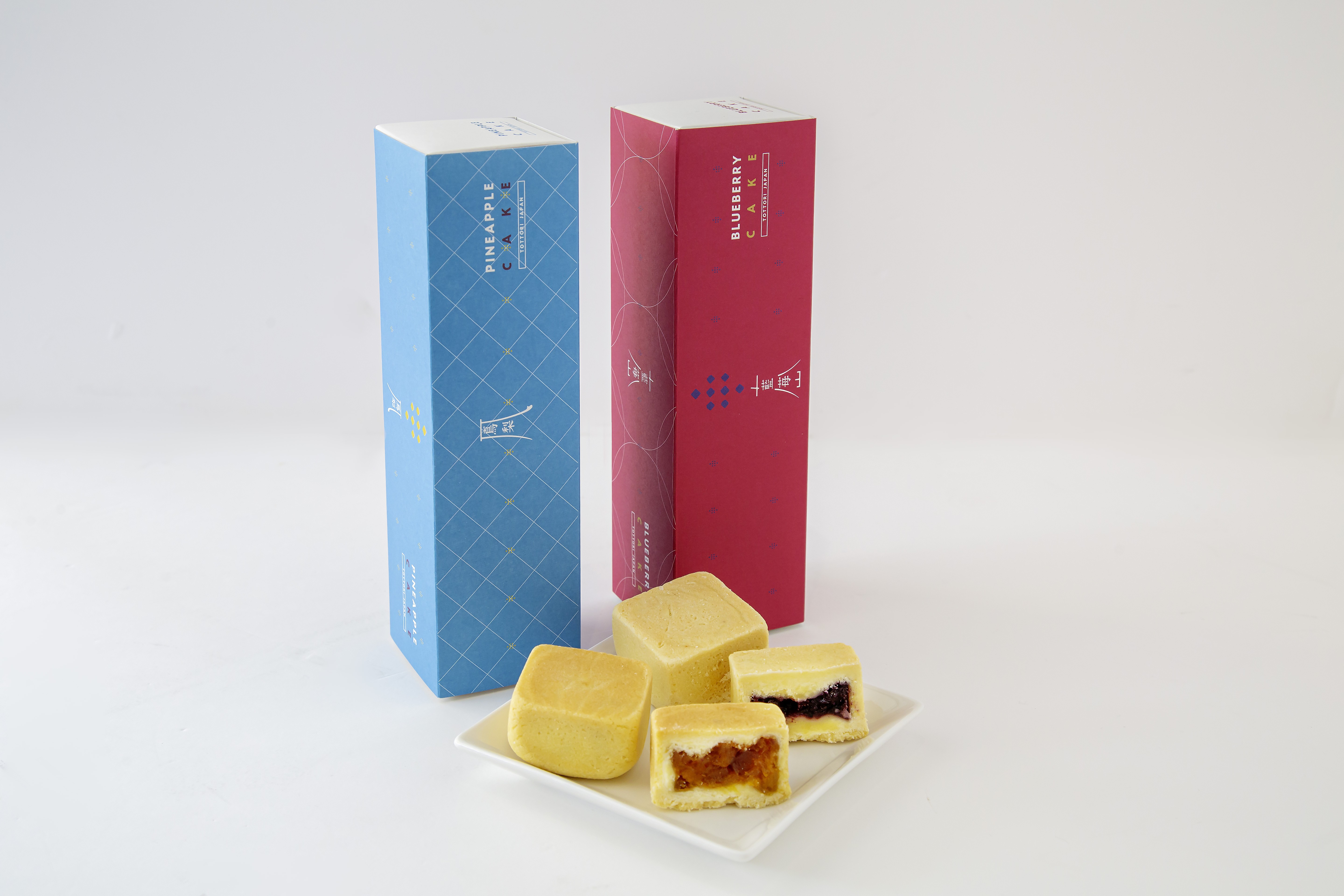 鳥取県で採れるブルーベリーをジャムにしてパイナップルケーキと同じ製法で焼き上げた藍苺ブルーベリーケーキとのセットです。