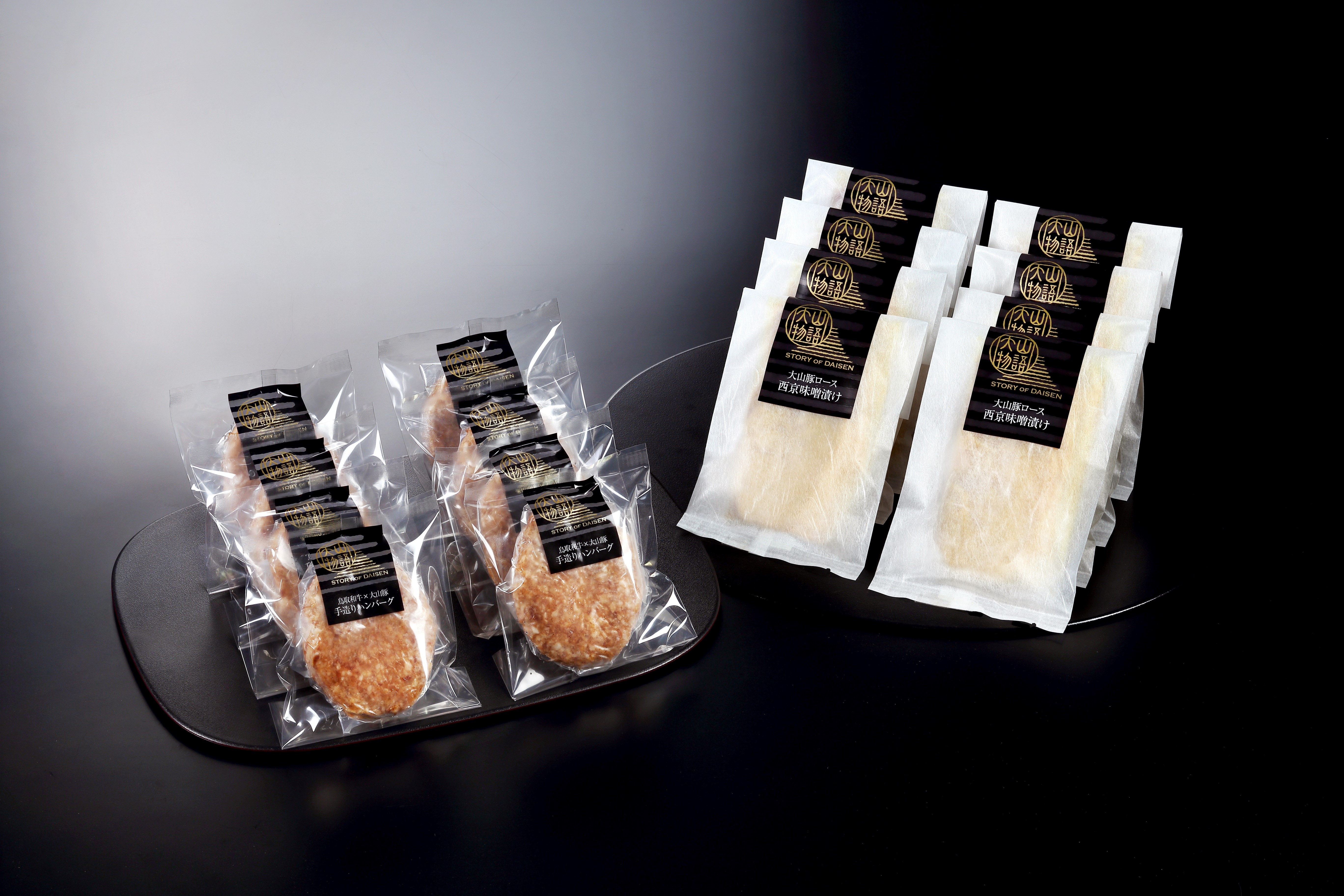 | 容量 | 大山豚ロース西京味噌漬け120g×8、鳥取和牛×大山豚手造りハンバーグ120g×8 |