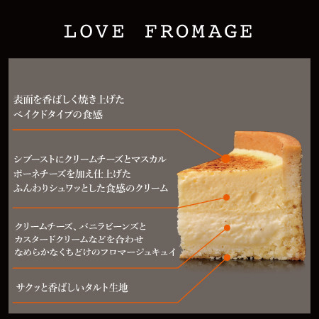 上層は豪州産クリームチーズと国産マスカルポーネを使用したふわっと軽めのチーズのシブースト。