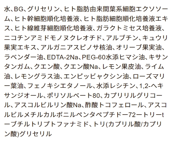 ・配合成分:ヒト幹細胞エキス2種、エクソソーム、アルブチン、NMN、ガラクトミセス培養液