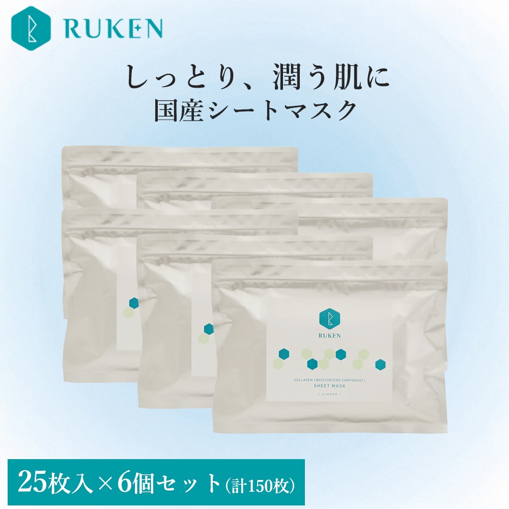 低分子コラーゲン(自社製造製品RUKENコラーゲンリキッド)を贅沢配合!! RUKENシートマスク6点セット