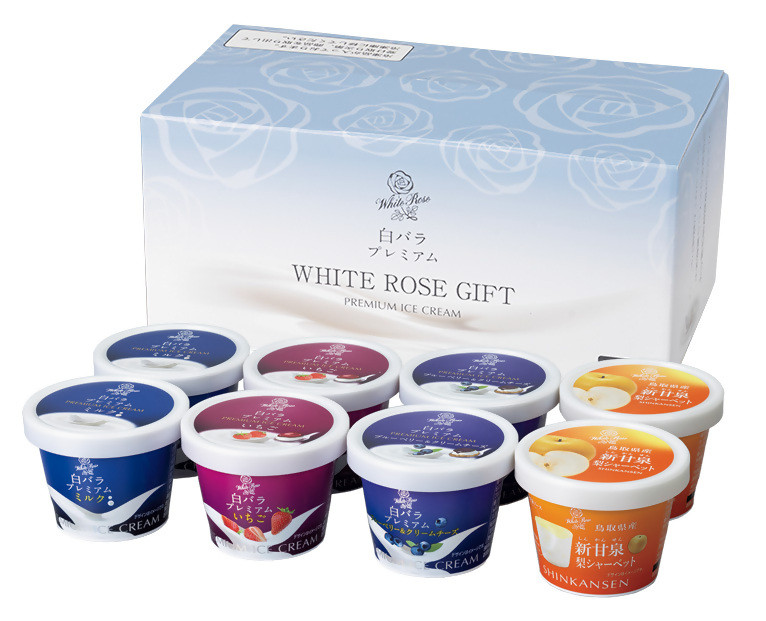 白バラプレミアム【ミルク】には隠し味にマダガスカル産バニラを、【いちご】には鳥取県産いちごを、【ブルーベリー&クリームチーズ】には鳥取県産ブルーベリーを、