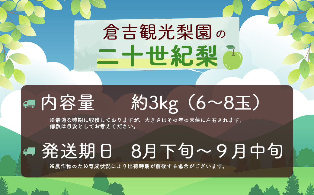 鳥取県が誇る二十世紀梨。。さわやかで上品な甘さが高級感を醸し出します 二十世紀梨 3kg【倉吉産】(倉吉観光梨園) 鳥取 梨 果物 フルーツ 和梨 先行予約 数量限定 詰め合わせ 二十世紀梨 20世紀梨 甘い 人気