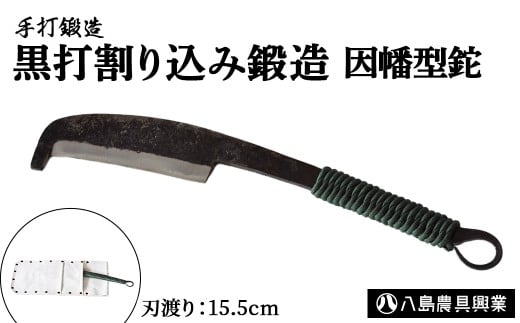 手打鍛造により製造しており、焼入れ時につく黒皮をあえて残した野趣あふれる地肌が特徴。 先端を重くして遠心力を利用して楽に切れる。 枝払いにご使用ください。 製造/八島農具興業(株)