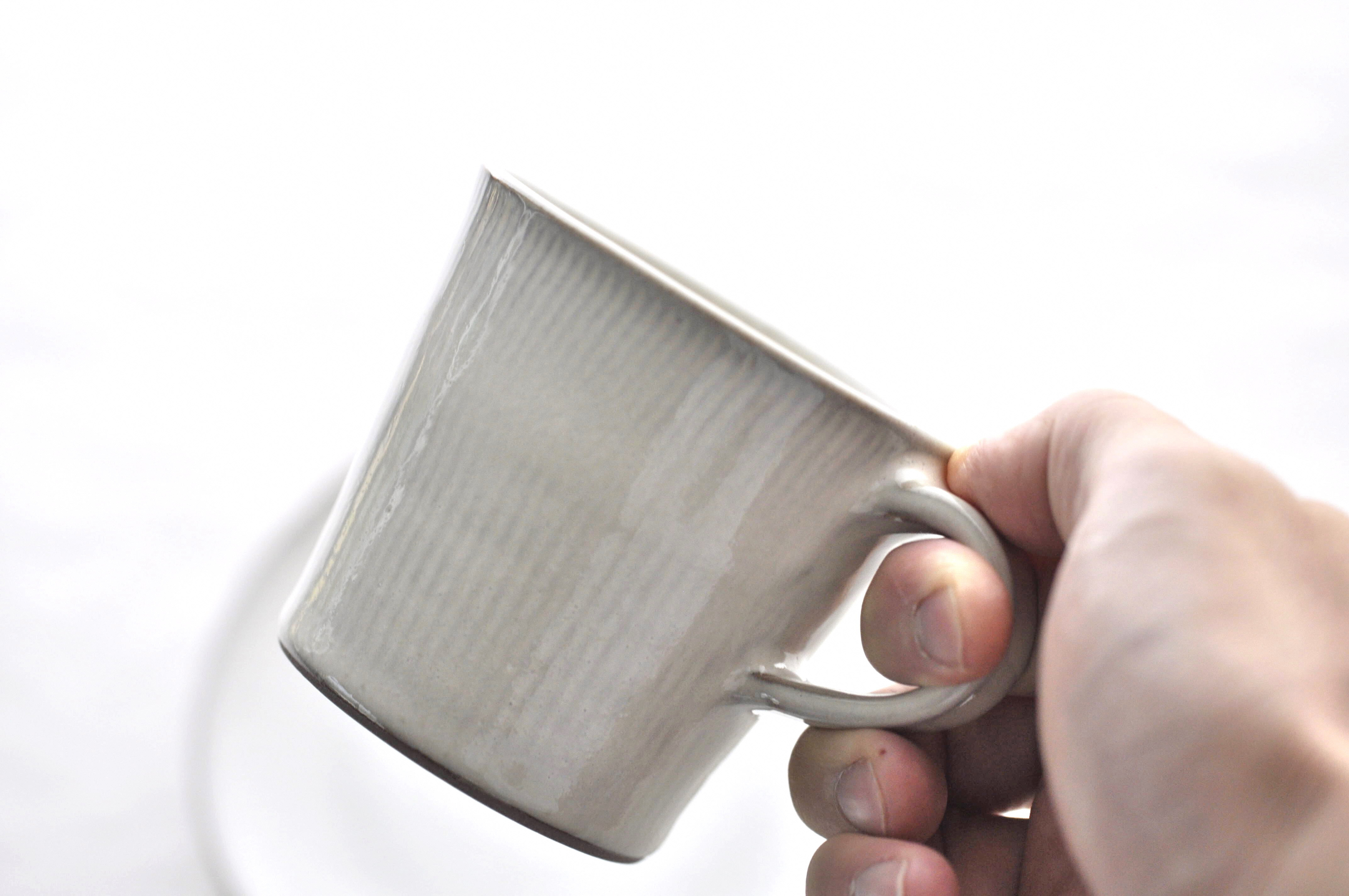 使い込むと器に貫入が入り表情が変化していきます。国造焼の白釉の白色は注がれた飲み物がより美しく綺麗に見えるよう、努力を重ね生まれた白色です。育てがいのある器です。器の表面には飛鉋(とびがんな)という技法が施されており、この模様は砂丘の風紋をイメージして製作されました。