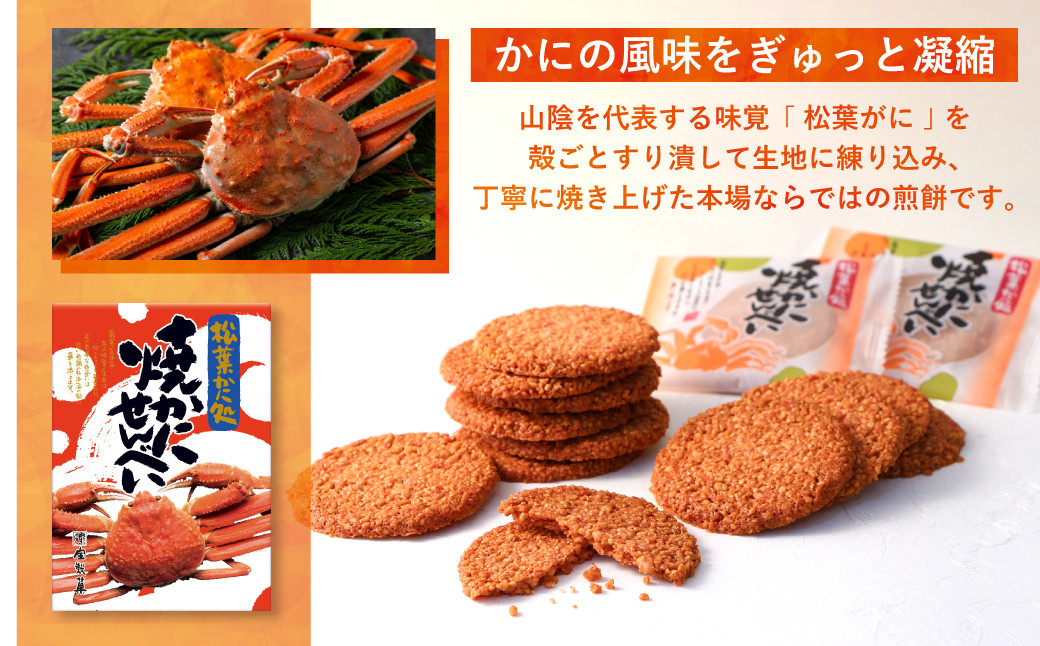 その松葉がにを殻ごとすり潰して生地に練り込み、焼き上げた本場ならではの煎餅です。
