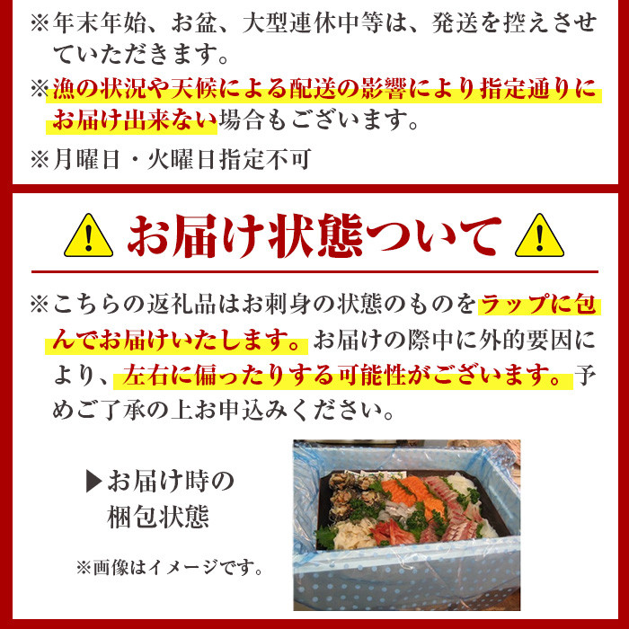 ※漁の状況や天候による配送の影響により指定通りにお届け出来ない場合もございます。