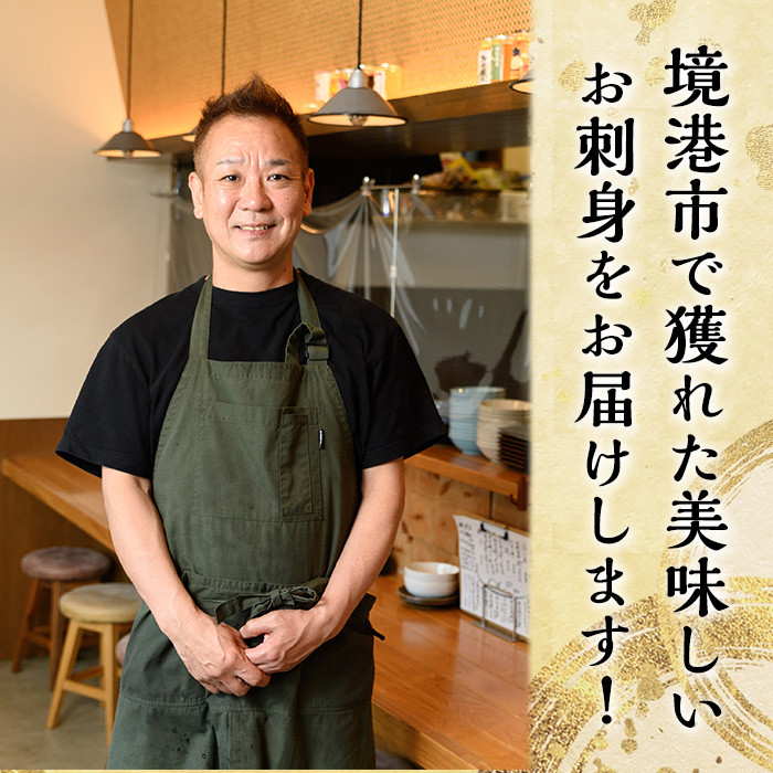 境港市で水揚げされた地魚を目利き人が選び、神経締め・血抜きをした旨味を引き出した刺身です。