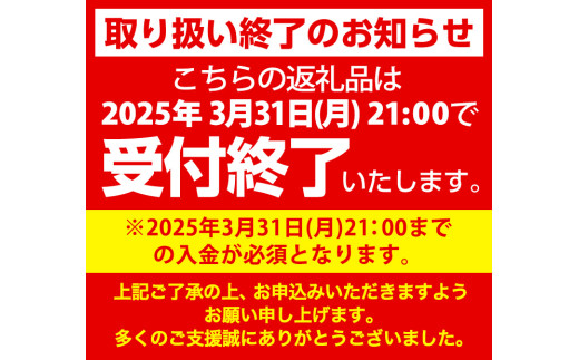 こちらの返礼品は2025年3月31日(月)23:59で受付終了いたします。