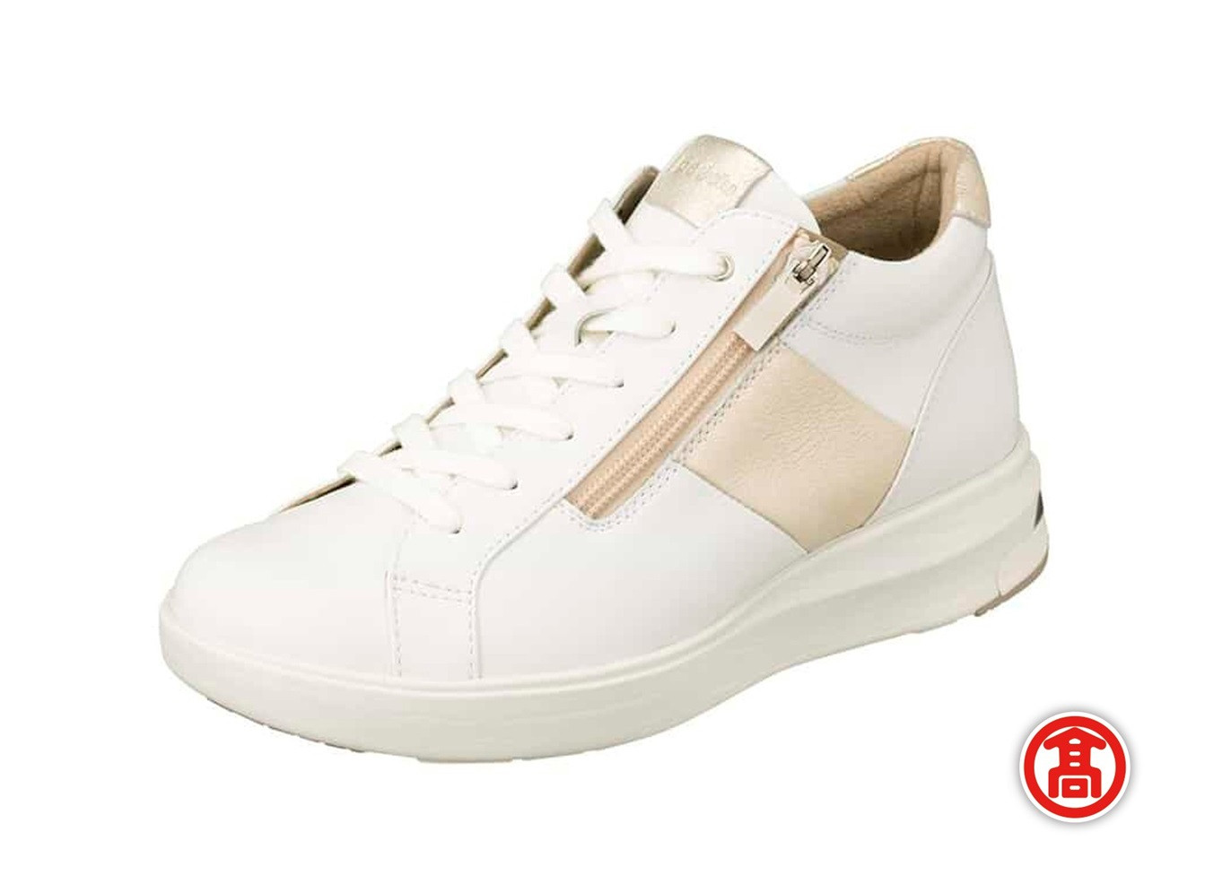 エレガントな素材使いのハイカットスニーカーデザイン! <ペダラ>レディーススニーカー 1212A103(カラー:ホワイト×リッチゴールド(フィルム加工)・サイズ:22.0~24.5cm)【T-SAK-AA7】【米子高島屋選定品】