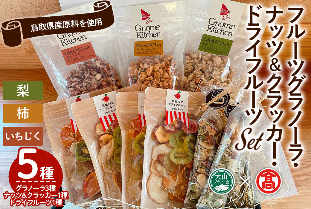 果肉で絡め作った日本初のグラノーラ、ナッツ、ドライフルーツのギフトセット! オーガニックナッツ&クラッカー・ドライフルーツ・グラノーラセット(5種)【T-DE3】【大山ブランド会】