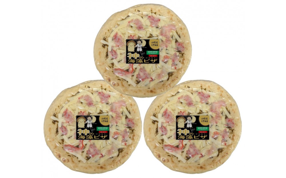 「カニピザセット」は、神の海藻ピザの中でも一番人気のカニ入りピザを3枚セットにしました。