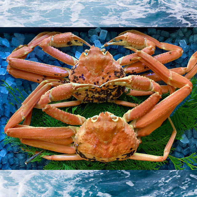 脚や爪が1本取れた活きの良い松葉ガニを丁寧に蒸しました。蒸すことで旨みが凝縮され、濃厚な味わいになります。