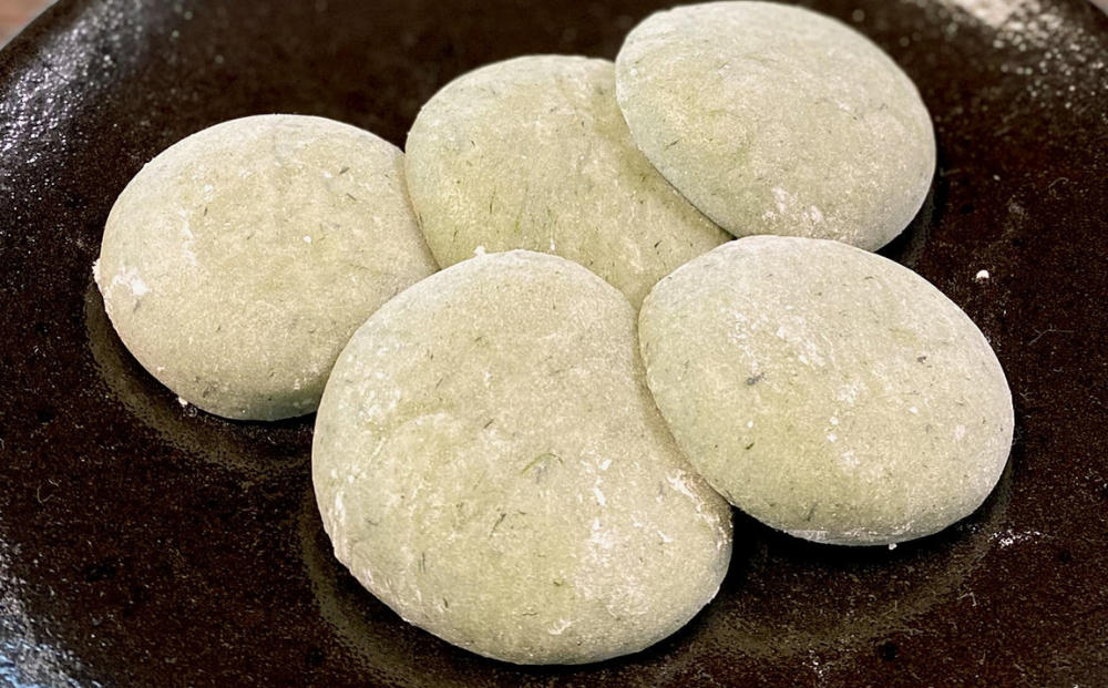 春、摘んできた柔らかなよもぎを昔ながらの知恵で囲炉裏の灰を使ってアクをとっております。