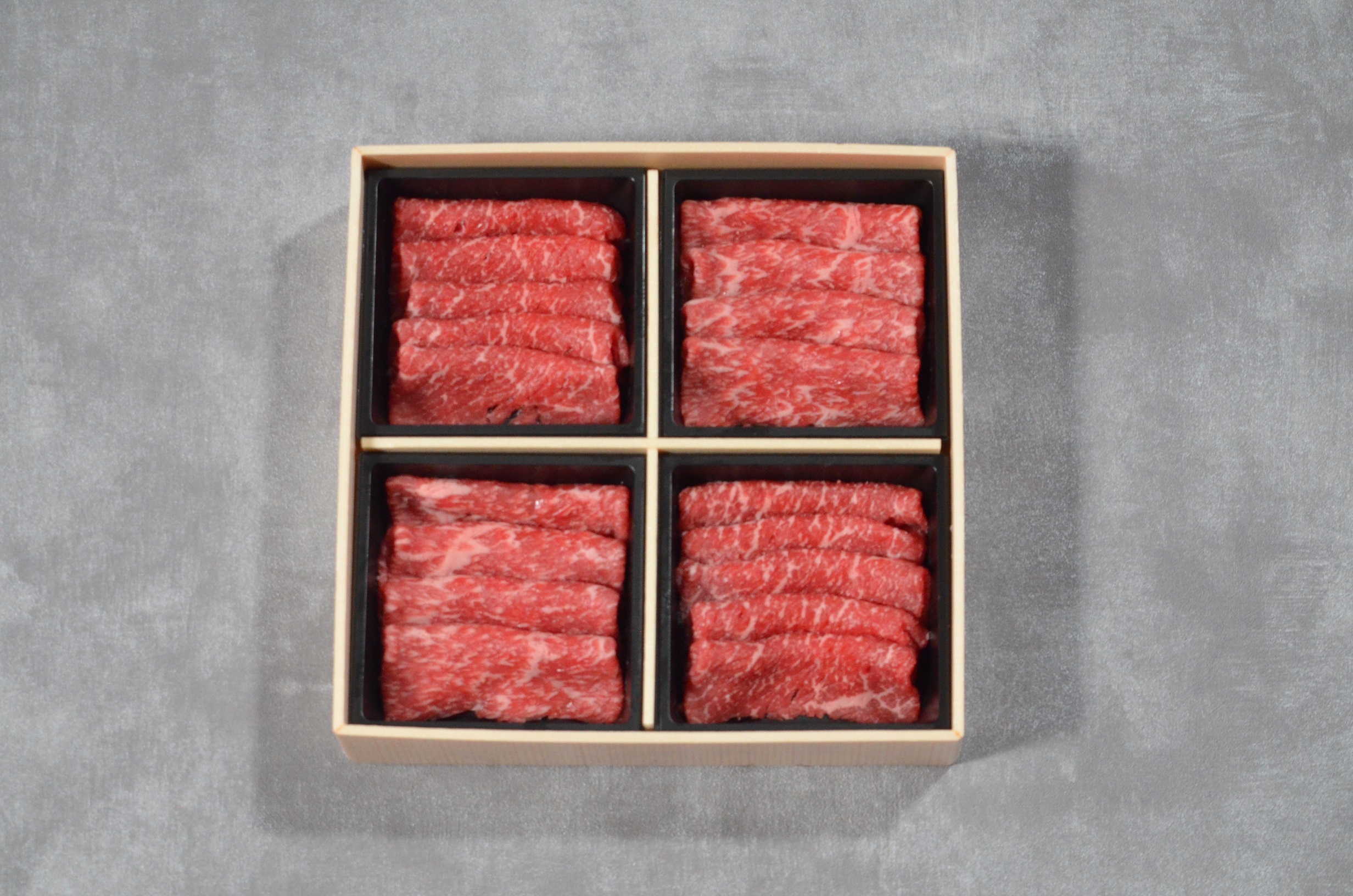 鮮やかな肉の美しさと上質な味わいが楽しめる、鳥取和牛4つの部位のしゃぶしゃぶすき焼き用をお届けします。贈答用にもぴったりな、見栄えのする精肉箱に入っています。