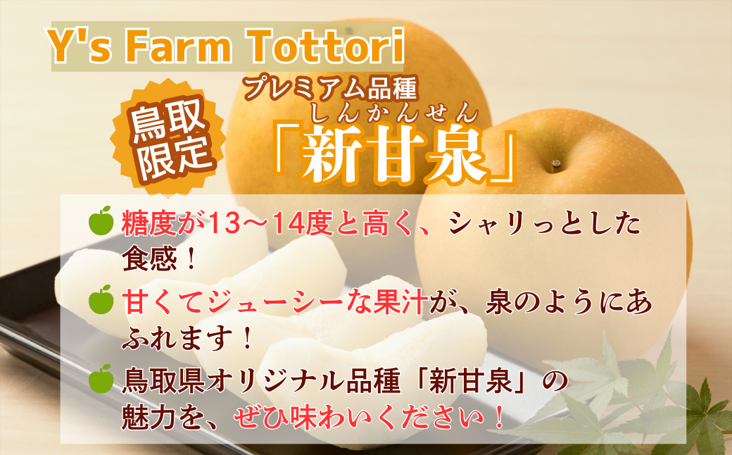 糖度が高くジューシーな食感の「新甘泉」!芳醇な甘さとあふれる果汁の味わいをぜひ! 新甘泉(赤秀) 3kg「Ys Farm Tottori」【梨 なし ナシ 果物 フルーツ ギフト 先行予約 甘い 果実 果汁 デザート もぎたて 旬】