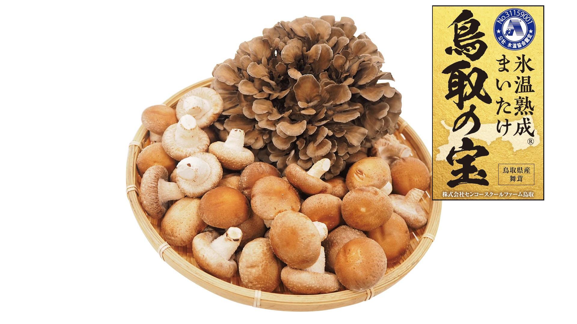 センコースクールファーム鳥取イチ押しの氷温熟成舞茸『鳥取の宝』と、ジューシーなしいたけのセット。